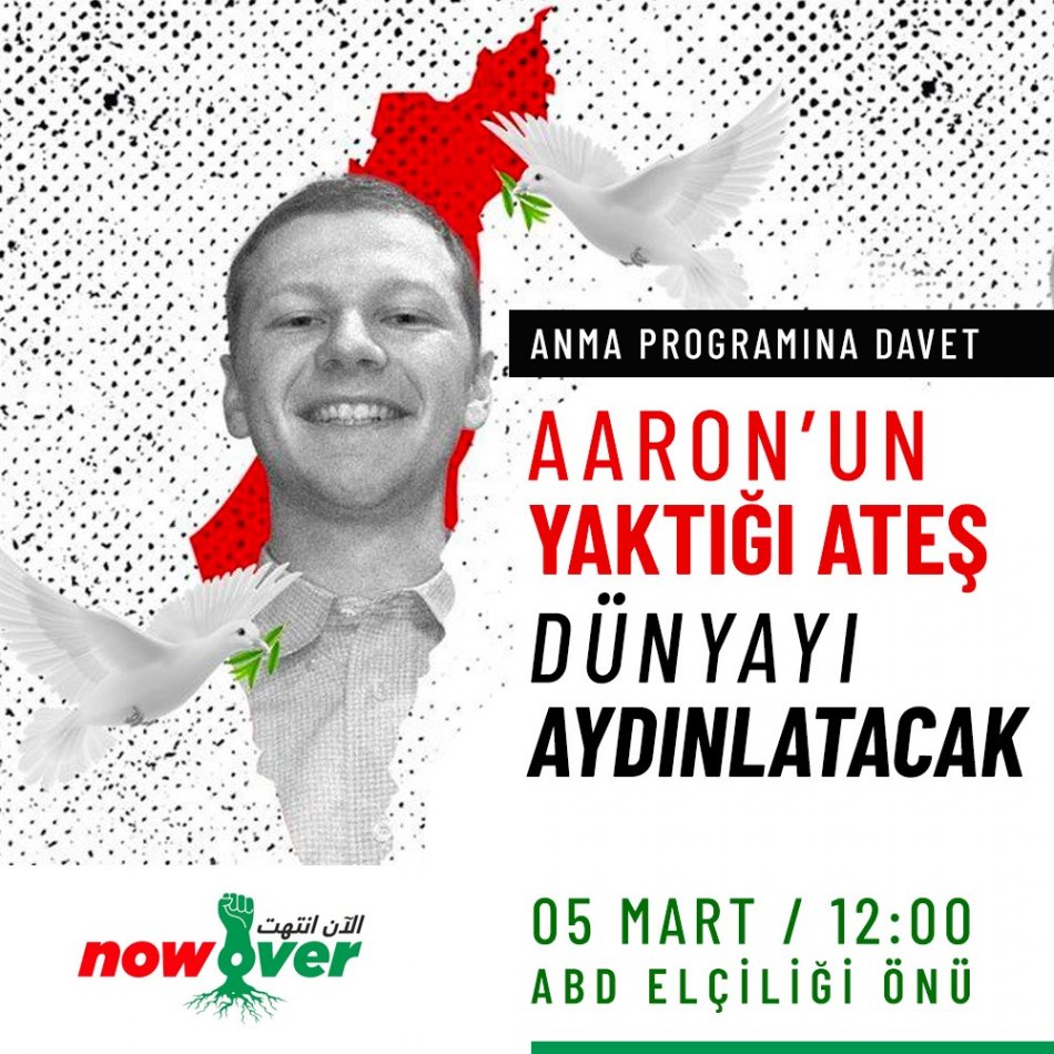 Gazze’deki katliam ve soykırımı protesto etmek için siyonist rejimin Washington büyükelçiliği önünde kendini ateşe veren ABD Hava Kuvvetleri personeli Aaron Bushnell için ABD Ankara büyükelçiliği önünde NOW OVER hareketi tarafından bir anma programı gerçekleştirildi.