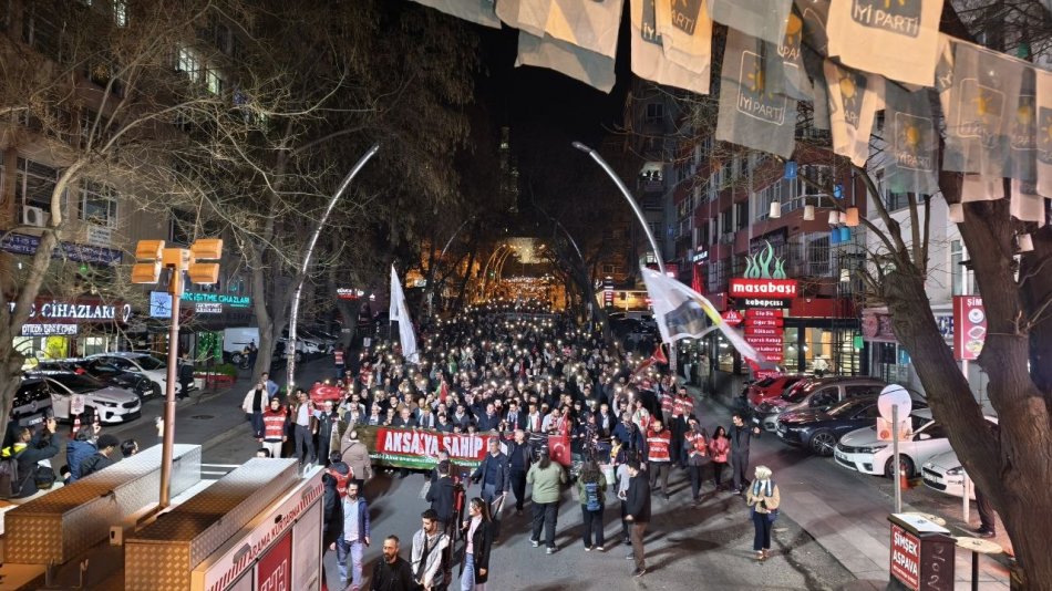 Ankara Filistin Dayanışma Platformu Mescidi Aksa'nın İbadete kapatılmasını protesto etmek amacıyla, Kocatepe Caminden Sıhhiye meydanına yürüyüş gerçekleştirdi.