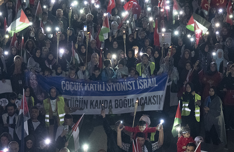 Ankara'nın Kocatepe Camii'nde toplanan binlerce kişi, Birleşik Aile Platformu öncülüğünde düzenlenen "Gazze'ye Işık Ol Aile Yürüyüşü" ile İsrail'in Filistin'e yönelik saldırılarına karşı seslerini yükseltti. Akşam namazı sonrası gerçekleşen etkinlikte, katılımcılar Filistin bayraklarıyla donanmış bir kortej oluşturarak Sıhhiye Meydanı'na kadar yürüdü. İslami STK'lar, vakıflar eyleme güçlü destek verdi.