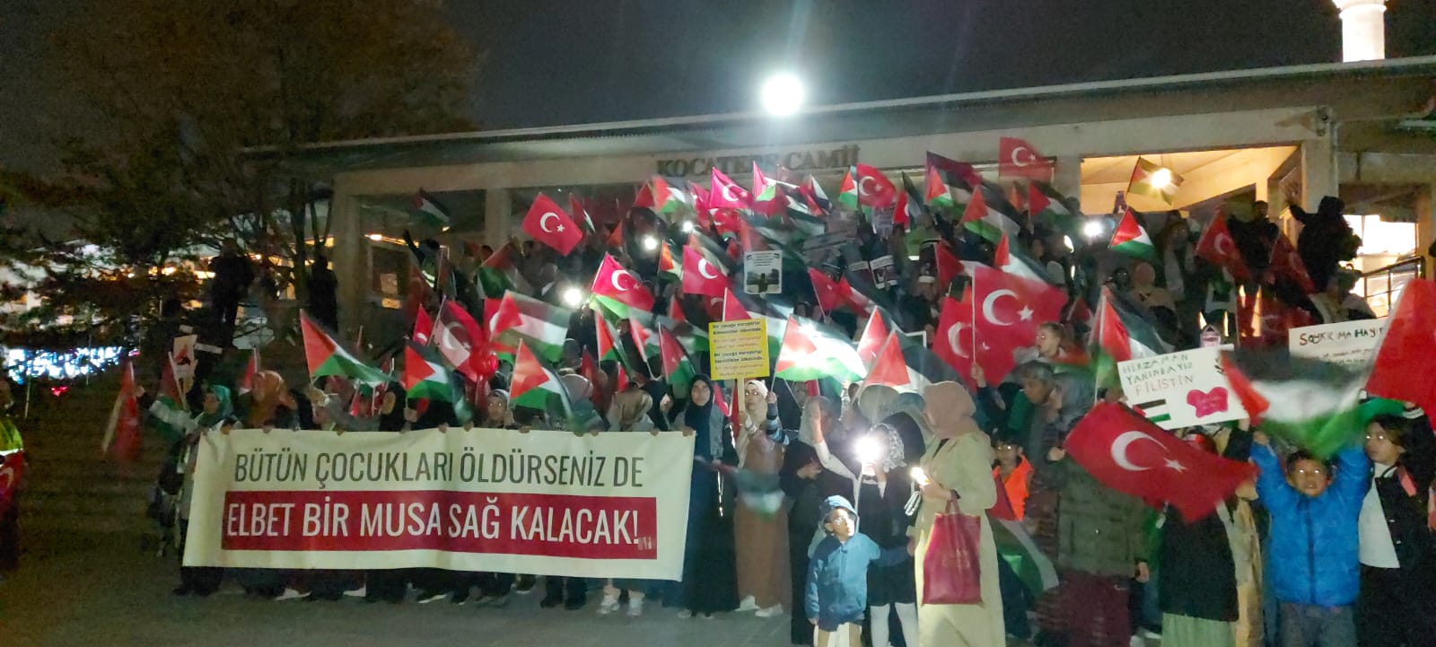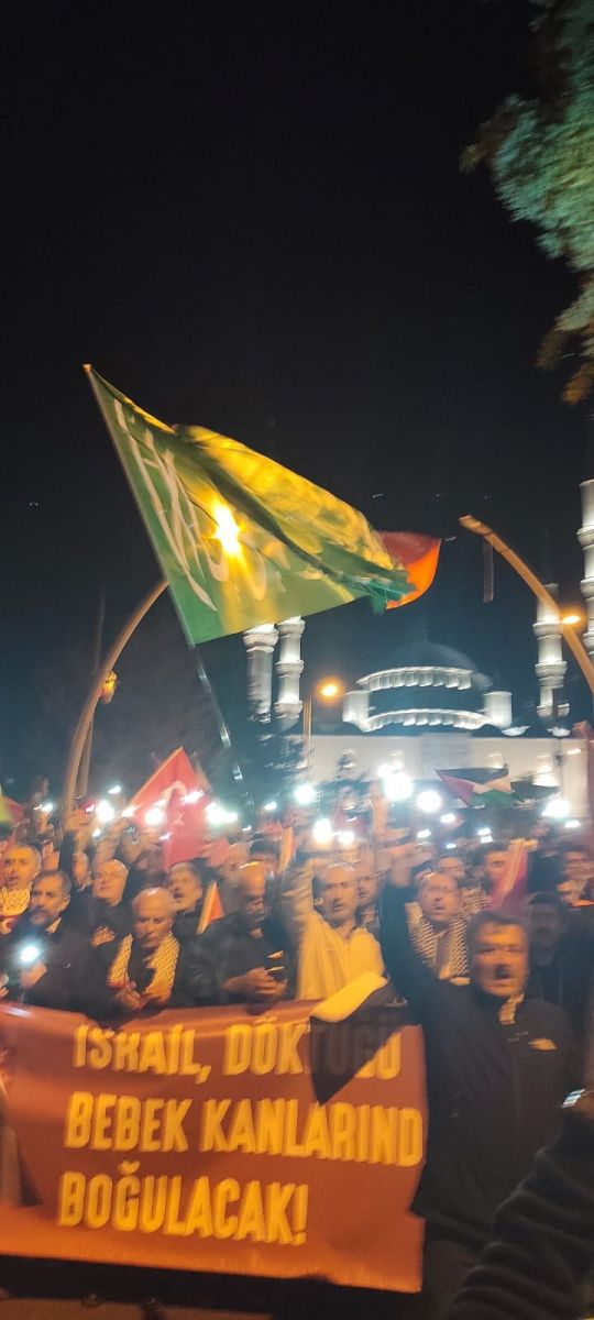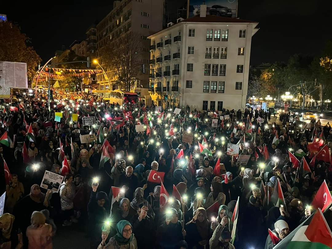 Biz de bugün burada Kocatepe Camii’nden Sıhhiye Meydanı’na kadar Gazze’ye ışık olmak için ailelerimizle tarihe not düşüyor, Filistin’in haklı davasında tarafımızı belli ediyor ve birlikte yürüyoruz!