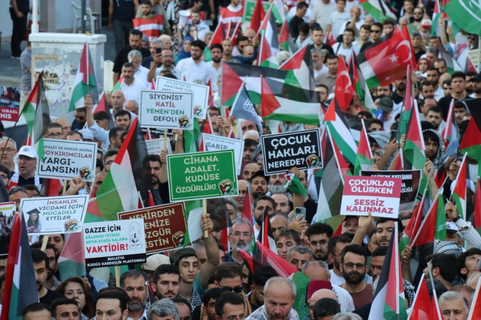 Ankara Filistin Dayanışma Platformu (ANFİDAP) ve Anadolu sivil toplum kuruluşlarının çağrısıyla yüzbini aşkın insan Kocatepe Camisi’nde bir araya geldi.