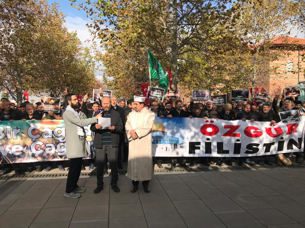 Açıklamada, tarihi örneklerle Gazze'nin direnişi ve özgürlük mücadelesiyle kıyaslanarak, Batı medeniyetinin barbarlığına rağmen Gazze'nin zaferle çıkacağına inançlarını dile getirdi. Ayrıca, basın açıklamasında Gazze'deki şehitlere rahmet dilendi ve Türkiye'den Filistin'e duyulan destek vurgulandı.