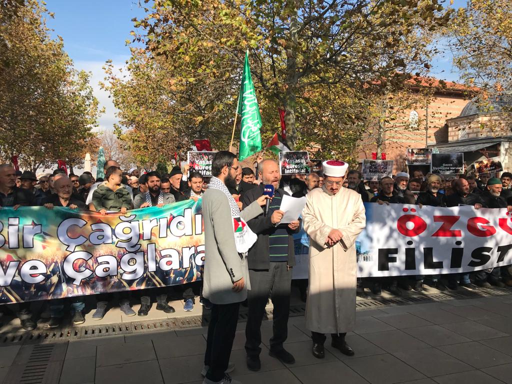 Kıymetli kardeşlerim Filistin'de, Gazze'de 14.000'den fazla insanımız şehid oldu. Bu kervana Türkiye'den iki kardeşimiz de katıldılar. Seyfullah Bilal Öztürk, Yakup Erdal kardeşlerimiz Lübnan sınırında Hamas yetkilileri ile birlikte iken siyonist teröristlerin bombalarıyla şehadet şerbetini içtiler. Rabbimiz Seyfullah Bilal Öztürk, Yakup Erdal ve tüm Gazze'li şehidlere rahmet eylesin. Biz inanıyoruz ki Türkiye'den milyonlarca insan bu duygu ile yaşıyor. Mescid'i Aksa için şehadete koşacak milyonlar var bu ülkede. Fakat bazı kendini bilmezler bunu anlayamazlar.