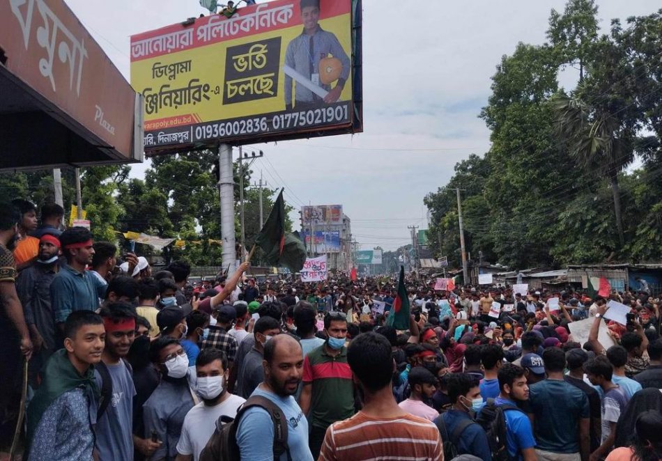 Öte yandan Hasina rejimi ve polis, olayların bir halk ayaklanma olarak değil, bir terör hareketi olarak nitelendirerek açılamalara ve tüm gücü ile müdahale edeceğini belirtti. Aynı zamanda rejim, ülkenin interneti tekrar bağlantısız bırakırken, Kısa süre önce kaldıran OHAL durumu ilan etti.