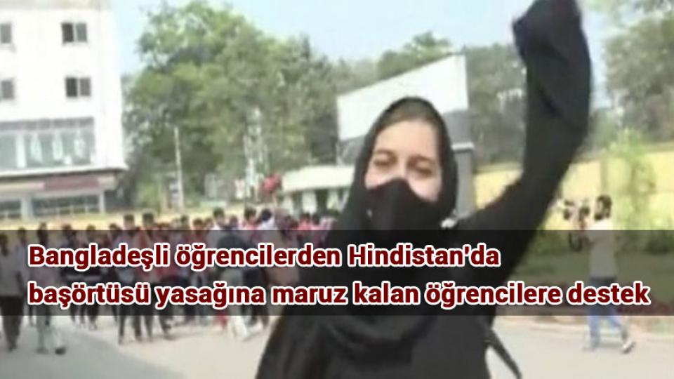 Bangladeş'teki Dakka Üniversitesinde yaklaşık 50 öğrenci kampüste bir araya gelerek başörtüsü konusunda Hindistan'daki Müslüman öğrencilerle dayanışma içinde olduklarını ifade etti.