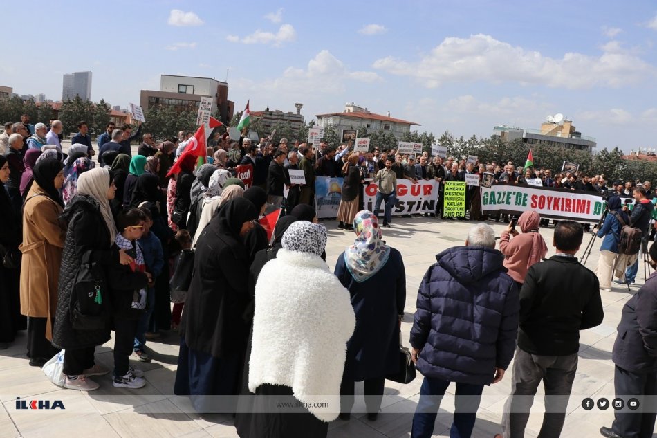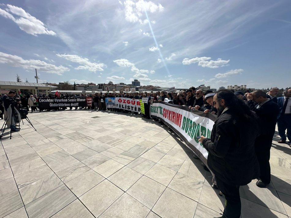 Zulme uğrayan mazlum Filistin halkına destek ve işgalci siyonistleri protesto için Ankara Filistin Dayanışma Platformu öncülüğünde basın açıklaması ve protesto eylemleri sürüyor.