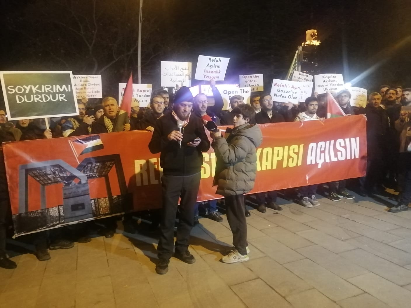 Ankara Filistin Dayanışma Platformuna mensup birçok sivil toplum kuruluşu, işgalci İsrail ve hamisi ABD’nin saldırıları altında olan Gazzelilere kapatılan Refah Sınır Kapısının açılması için eylem yaptı.
