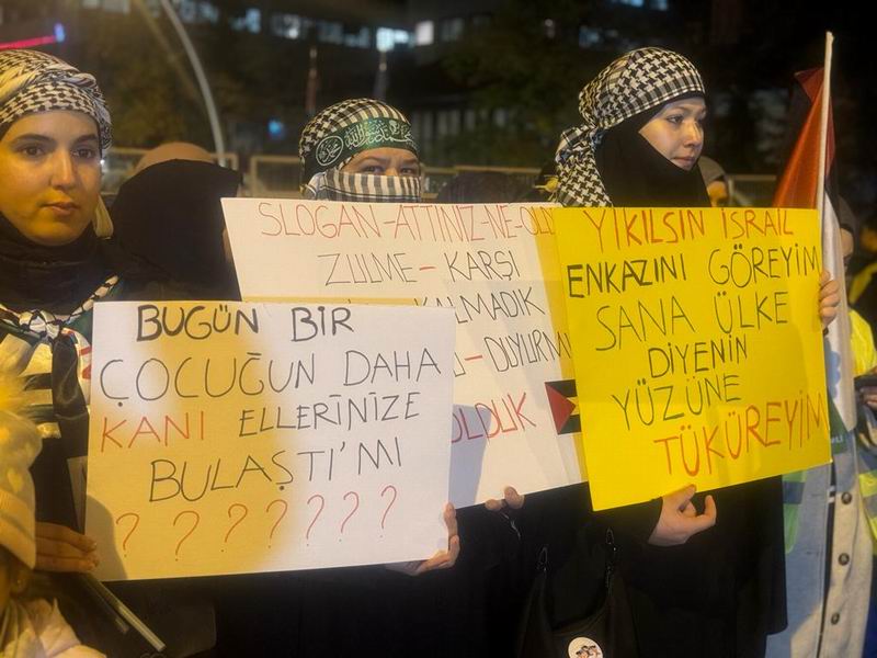 Ankara Filistin Dayanışma Platformunun çağrısıyla Mısır Büyükelçiliği önünde toplanan birçok sivil toplum kuruluşu mensubu “Refah Sınır Kapısı Açılsın” diye slogan attı.