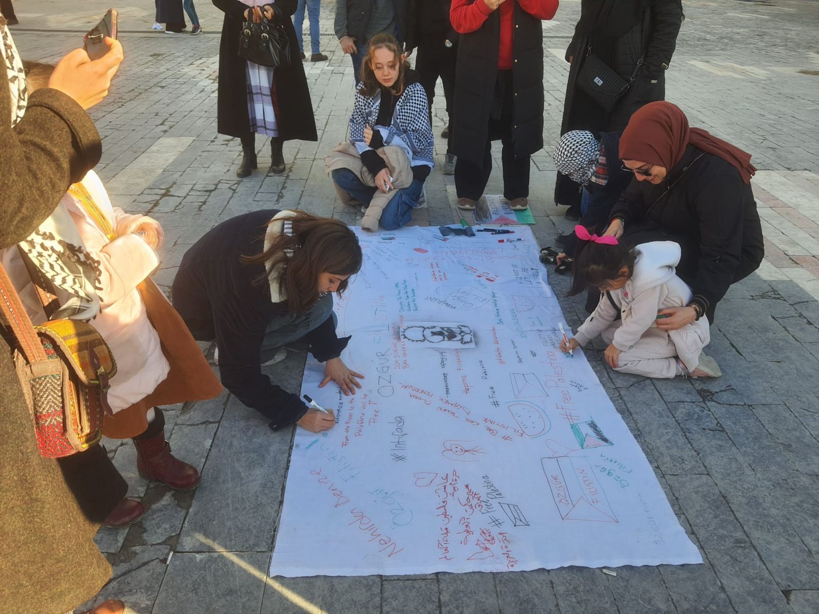 Bugün, Filistin'e Özgürlük Platformu tarafından Filistin'de yaşanan işgal nedeniyle basın açıklaması yapıldı. Platform adına düzenlenen basın açıklamasını Selin Tuksal, Neslihan Akbulut ve Can Irmak Özinanır okudu. Basın açıklmasında Gazze ve Filistin için acil ateşkes taleplerini yineleyen platform üyeleri, 83 gündür devam eden insanlık dramına dikkat çektiler. Bu süre zarfında Gazze'de 30 bine yakın insanın hayatını kaybettiğini, bunun içinde 11 bin çocuk ve 6 bin kadının olduğunu belirten açıklamada, özellikle sivillerin hedef alındığı vurgulandı.