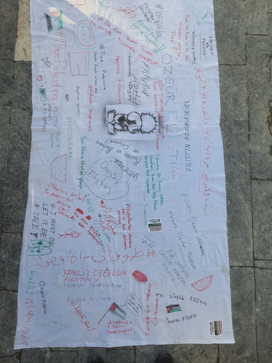 Filistin'e Özgürlük Platformu adına Selin Tuksal, Neslihan Akbulut ve Can Irmak Özinanır tarafından okunan basın açıklamasının tam metni aşağıda verilmiştir: