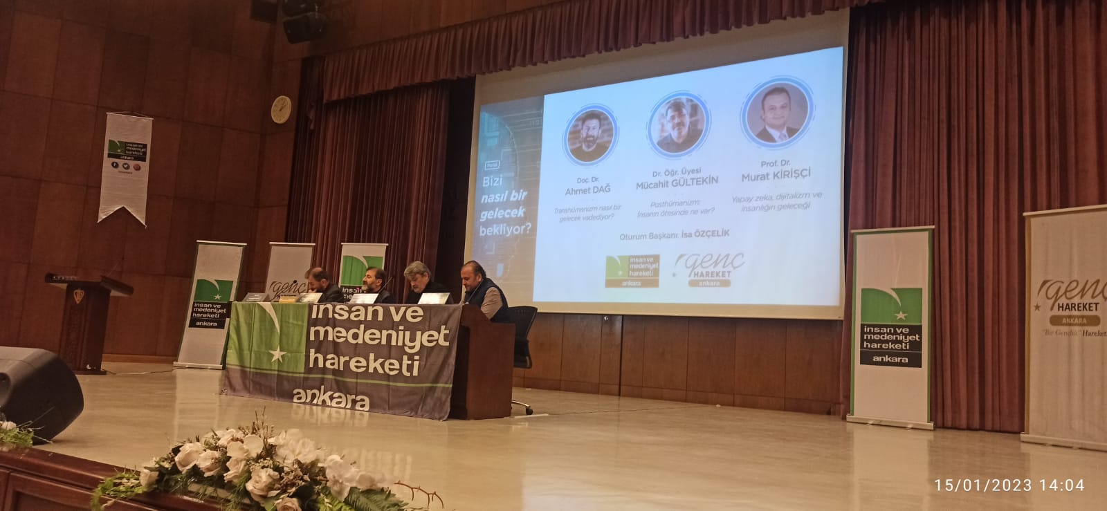İMH (İnsan ve Medeniyet Hareketi) Ankara ve Genç Hareket Ankara'nın düzenlediği panelde transhümanizm, posthümanizm, yapay zeka ve dijitalizm üzerine konuşuldu. Oturum başkanlığını İsa Özçelik'in yaptığı ve Doç. Dr. Ahmet Dağ, Dr. Mücahit Gültekin ve Prof. Dr. Murat Kirişçi'nin konuşmacı olduğu panel katılımcılardan yoğun ilgi gördü.