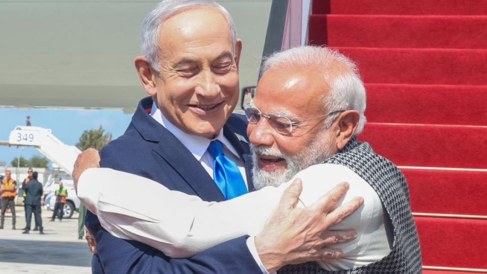 Siyonistler birlikteliklerini her alanda sürdürürken, Müslümalar paramparça.. Hindistan'ın siyonist sevici Başbakanı Narendra Modi, savunma ve yapay zeka alanlarında iş birliğini geliştirmek amacıyla iki günlük ziyaret için işgalci İsrail'de.