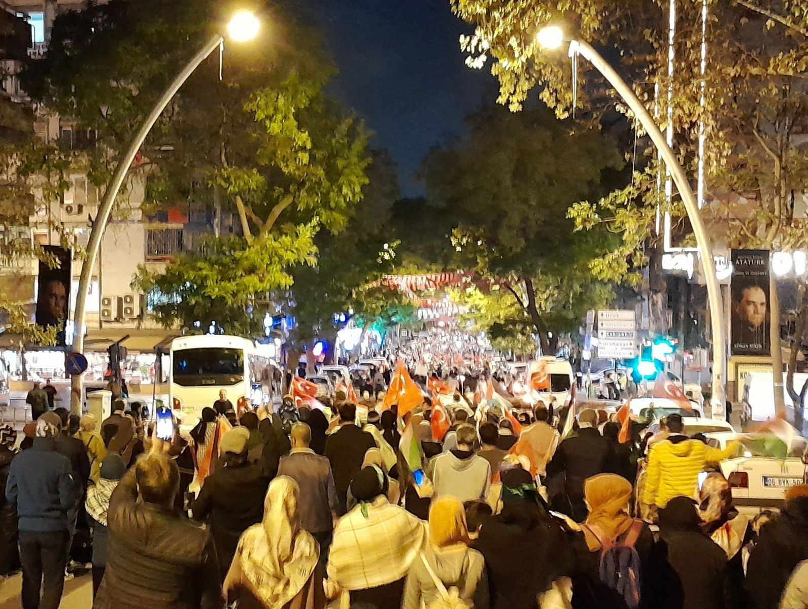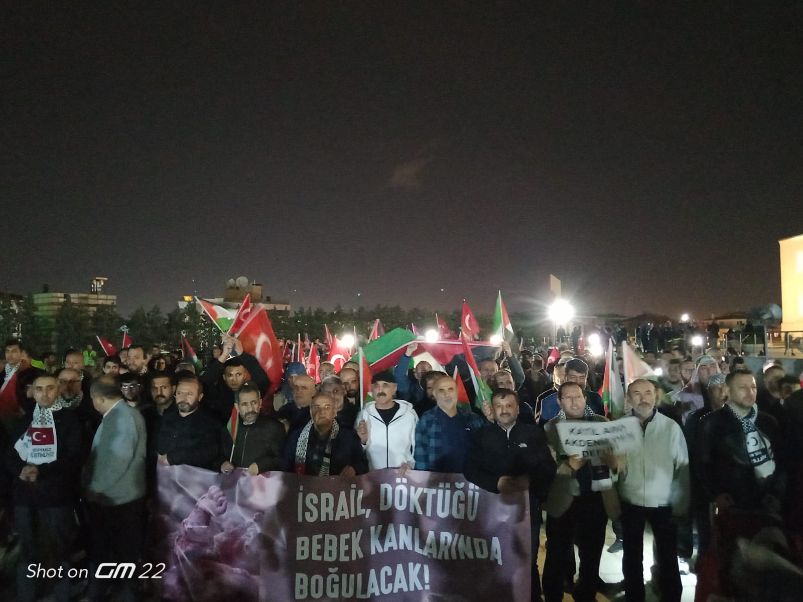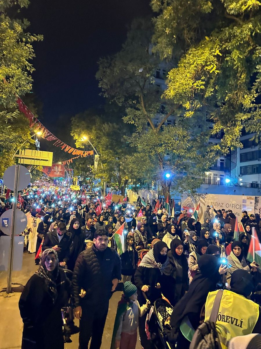Biz de bugün burada Kocatepe Camii’nden Sıhhiye Meydanı’na kadar Gazze’ye ışık olmak için ailelerimizle tarihe not düşüyor, Filistin’in haklı davasında tarafımızı belli ediyor ve birlikte yürüyoruz!