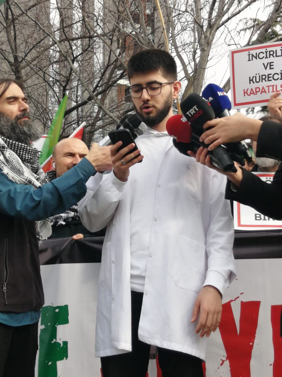 MAZLUMDER Ankara Şube Yönetim Kurulu Üyesi Ramazan Acar, Ankara Filistin Dayanışma Platformu adına yapılan basın açıklamasını okudu. Acar, İsrail'in Gazze'ye yönelik 133 gündür devam eden soykırımında, 28 binden fazla can kaybı olduğunu belirtti.
