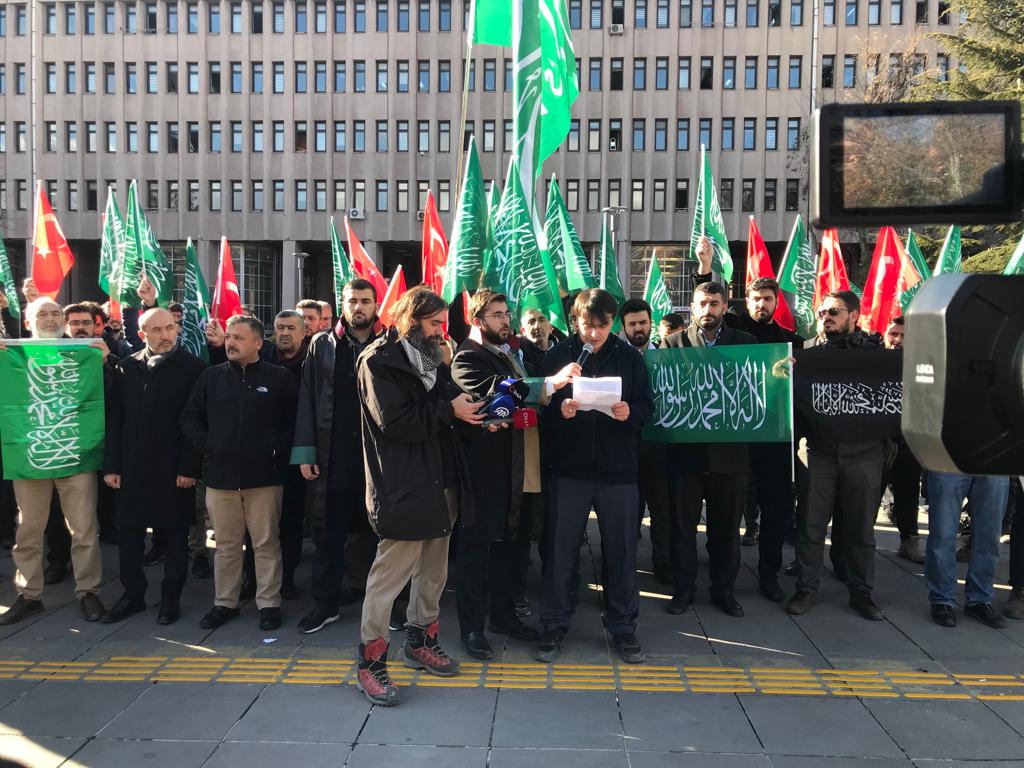Bugün Ankara Adlisesi önünde gerçekleştirilen gösteride gençler adına yapılan basın açıklamasını gençler adına Ömer Budak okudu. Budak'ın okuduğu basın açıklaması sırasınnda, Tevhid Bayrağının yanısıra Türk ve Filistin bayrakları da dalgalanarak, İsrail'in zulmü ve siyonizmin temsilcisi PKK'nın lanetlendiği belirtildi.