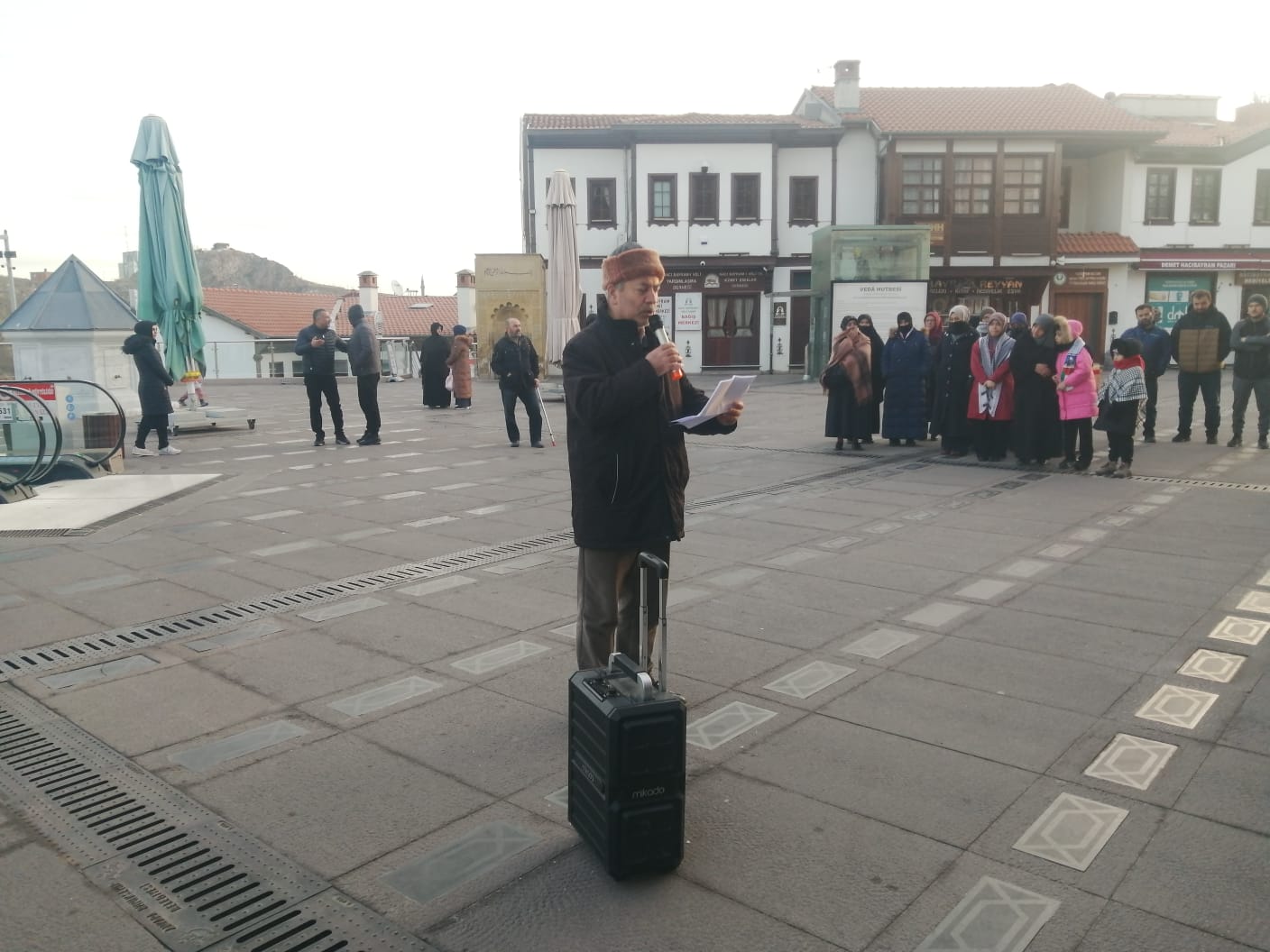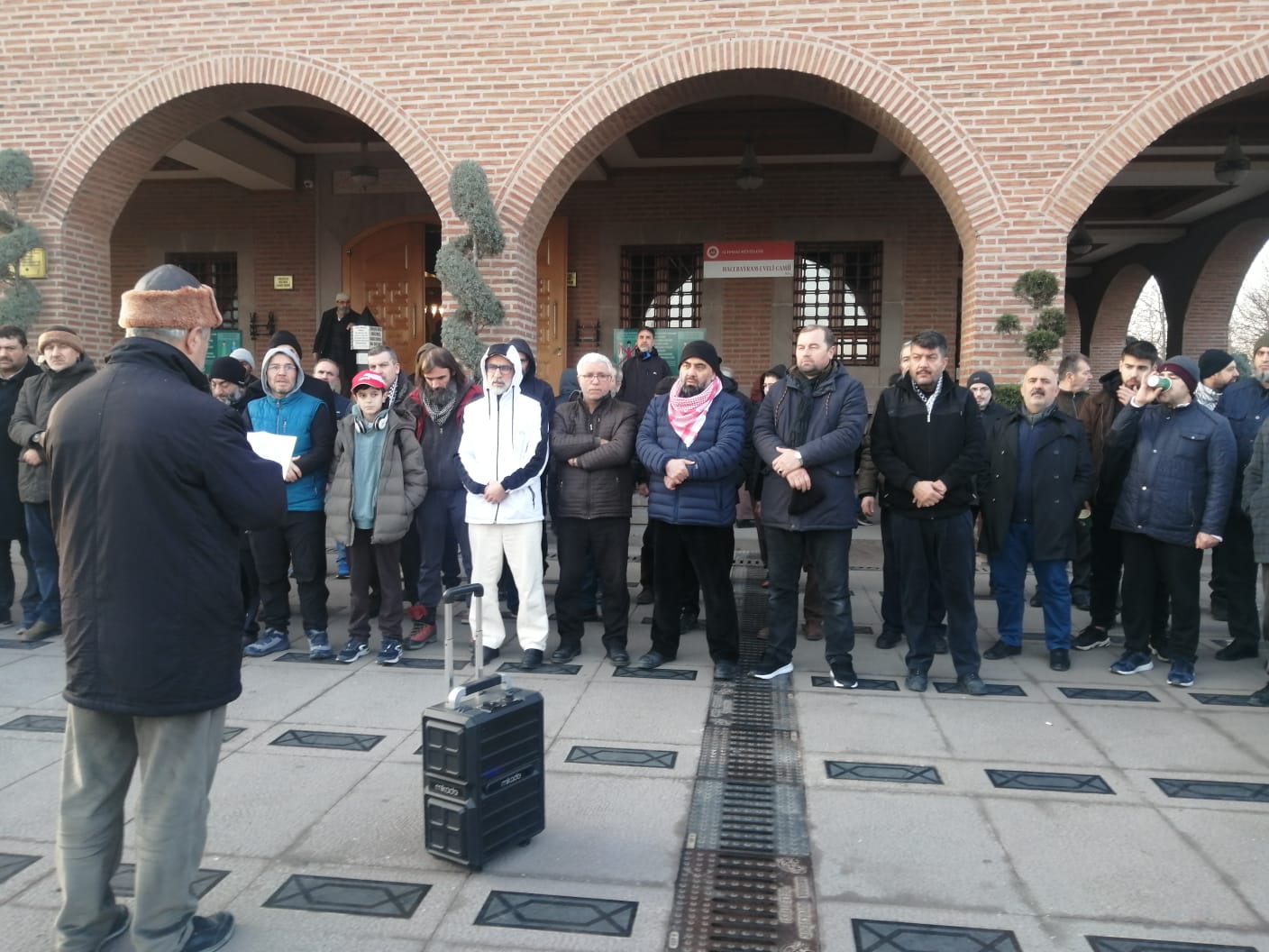 Ankara Filistin Dayanışma Platformu bu sabah, Sabah Namazı çıkışı sonrası Hacı Bayram Cami Önünde Filistine özgürlük için ve İsrail'in işlediği soykırımlara karşı durmak için basın açıklaması gerçekleştirdi.