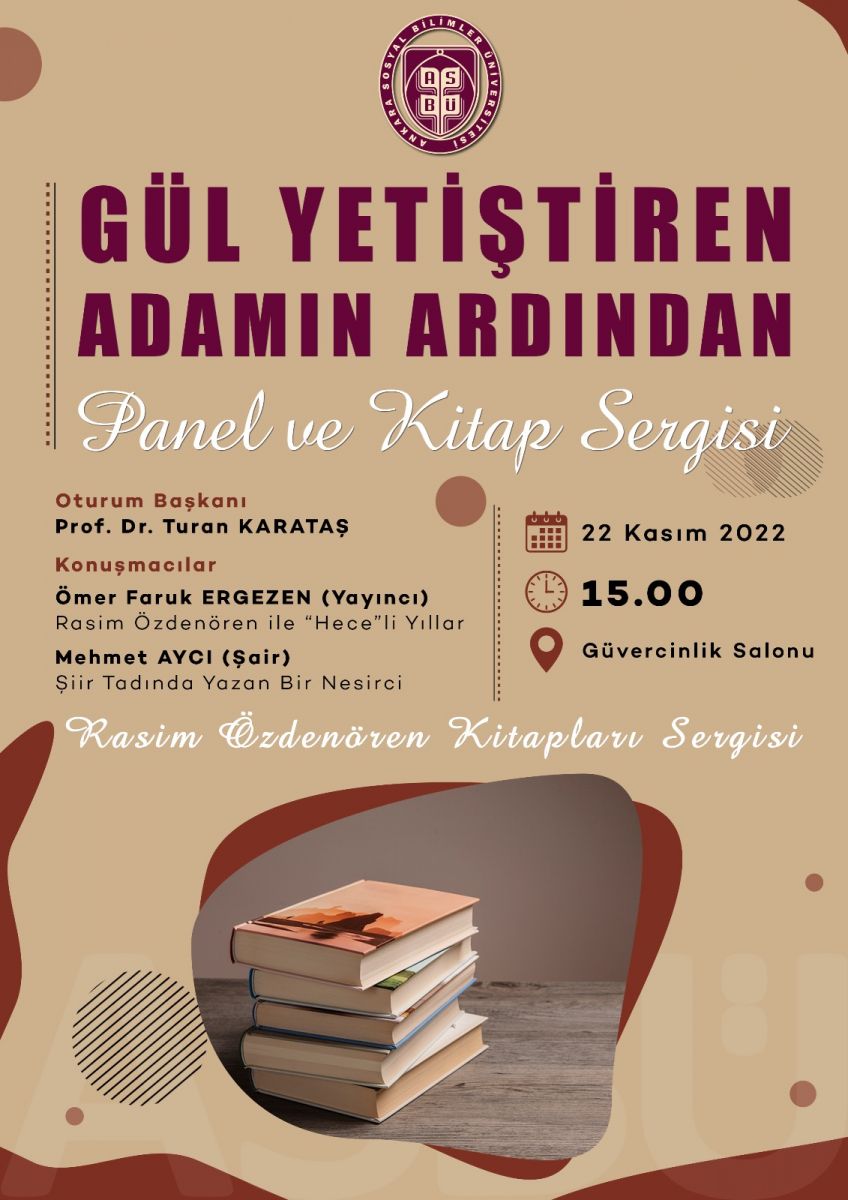22 Kasım saat 15.00'da ASBÜ’de gerçekleştirilecek “Gül Yetiştiren Adamın Ardından Panel ve Kitap Sergisi”nde merhum Rasim Özdenören çeşitli açılardan ele alınacak.