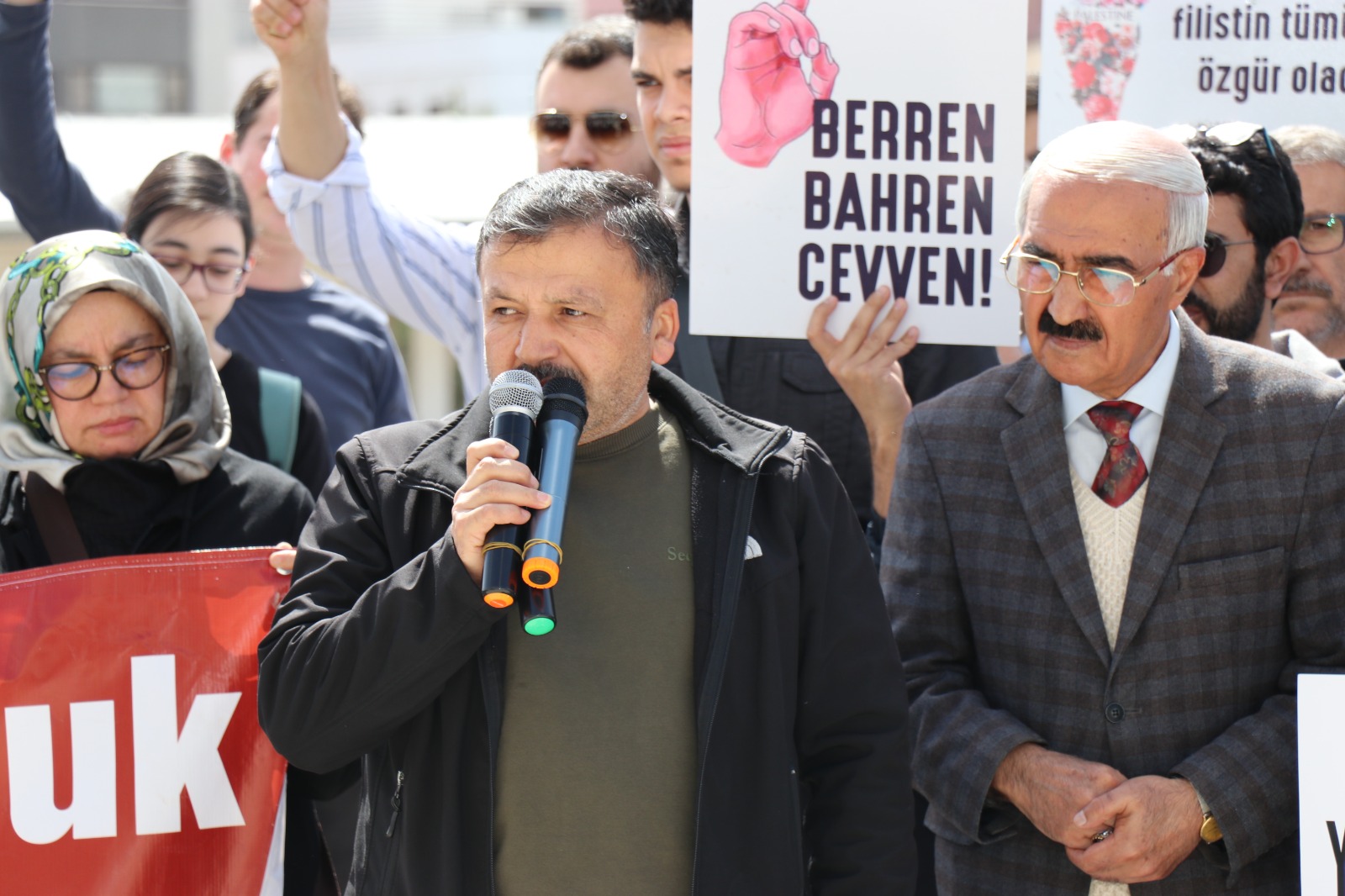 Ankara Filistin Dayanışma Platformu adına Özgür-Der Ankara Şube Başkanı Yasemin Öğüt, tarafından basın açıklaması okundu.