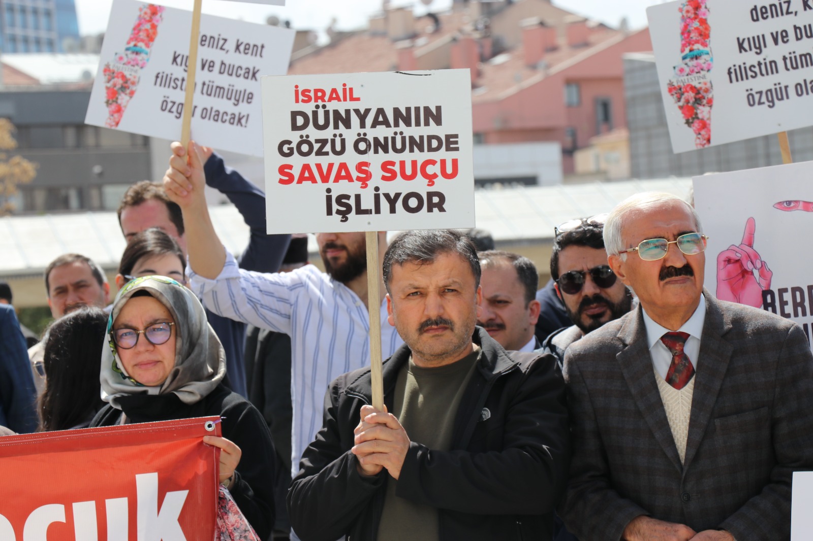 Zulme uğrayan mazlum Filistin halkına destek ve işgalci siyonistleri protesto için Ankara Filistin Dayanışma Platformu öncülüğünde basın açıklaması ve protesto eylemleri sürüyor.
