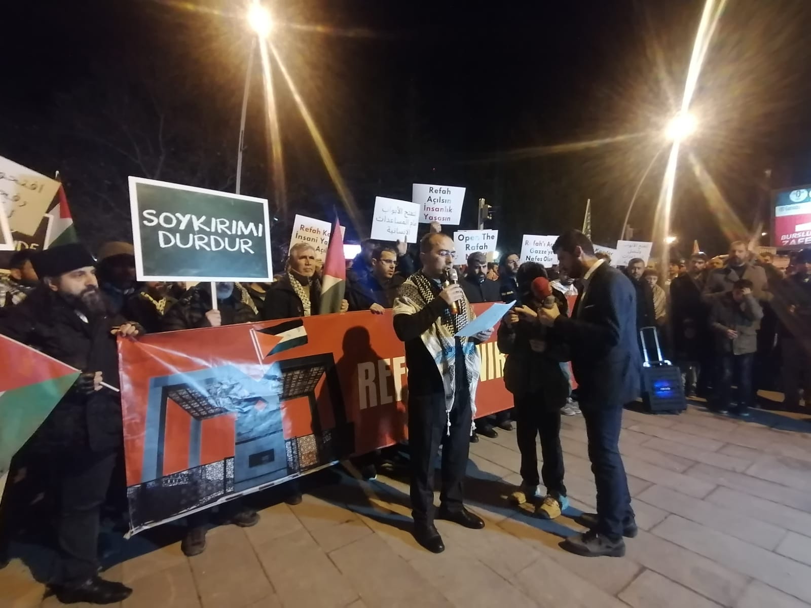 Kardeşlerimiz Gazze’de vahşice öldürülüp hayatta kalanlar ölüme terk edilirken, İslam ülkelerinin yönetimlerinden beklenen somut adımların atılmaması içimizi acıtıyor. Şu an Mısır büyükelçiliği önünde bir araya gelen vicdan sahipleri olarak başta Mısır Devlet İdaresi olmak üzere tüm İslam ülkelerinin yöneticilerinin, Gazzeli kardeşlerimize insani yardımların sürekli olarak ulaştırılabilmesi için somut adım atmaları hayati öneme sahiptir. Bu açıdan, İslam ülkelerinin liderleri tüm imkânlarını seferber ederek, Mısır Devleti’nin Refah Sınır Kapısı’nı açması için her türlü siyasi ve diplomatik girişimde bulunmalıdırlar. Aksi durumda bütün bu liderler akan bunca Müslüman kanının vebali altında ezileceği gibi tarih boyunca, bir sınır kapısını dahi açamamanın zillet ve utancını taşıyacaktır.