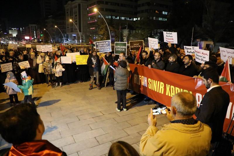 Ankara Filistin Dayanışma Platformuna mensup birçok sivil toplum kuruluşu, işgalci İsrail ve hamisi ABD’nin saldırıları altında olan Gazzelilere kapatılan Refah Sınır Kapısının açılması için eylem yaptı.
