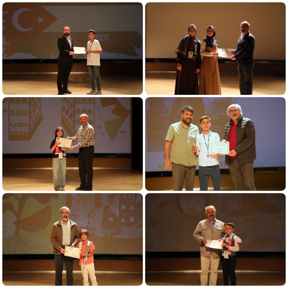 İlkokuldan liseye kadar her yaş grubundan yüzlerce öğrencinin katıldığı yarışmada; resim, slogan ve kısa film kategorilerinde eserler değerlendirildi. Öğrenciler, Gazze’de yaşanan insanlık dramına kelimelerle, çizgilerle ve karelerle karşılık verdi. Her bir eser, binlerce kilometre öteden yükselen bir vicdan çığlığına dönüştü.