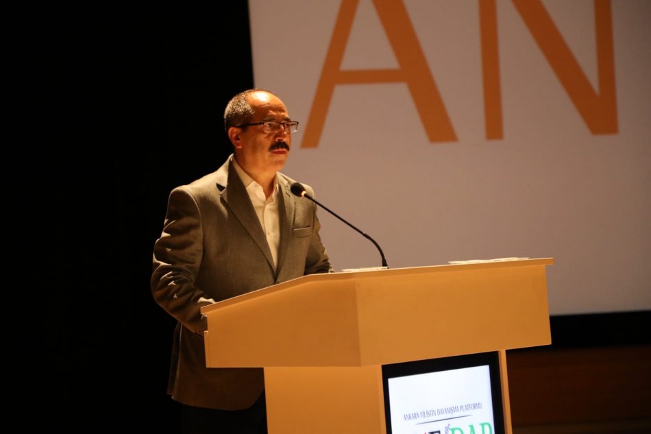 Semi Okumuş, 40 civarında ulusal ve yerel sivil toplum kuruluşumuzdan oluşan Ankara Filistin dayanışma platformun kıymetli üyeleri yöneticileri 7 Ekim 2023'ten beri hepimiz adına insani vicdani görevlerini yaptıklarını ve büyük bir fedakarlık ve özveri ile korkunç bir dramı katliamı gündeme getirmeye engellemeye çalıştıklarını söyledi.