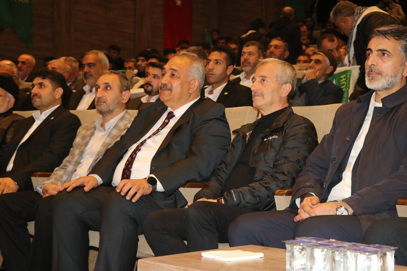 "Yeri geldi partimizi geri çektik, yeri geldi memleket için bütün kazanımlarımızı riske attık, sahaya indik, şehitler verdik ama memleket düşmanlarına, birlik beraberliğimize kasteden anlayışlara da pabuç bırakmadık. Bu ruha her zaman ihtiyaç var, bunu muhafaza etmemiz lazım. HÜDA PAR'ın bu anlamda önümüzdeki süreçte üzerine çok fazla sorumluluk düştüğünü, bu ruhun temsilcisi olduğunu ve bu anlamda her zaman inisiyatif alıp sahaya gideceğini buradan bir kez daha ifade etmek istiyorum."