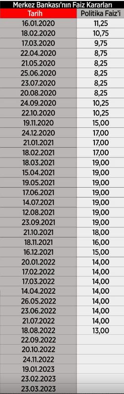 Merkez Bankası, uzun süredir yüzde 14'te sabit tuttuğu politika faizini bir önce ay 100 baz puan düşürerek yüzde 13 seviyesine getirmişti.