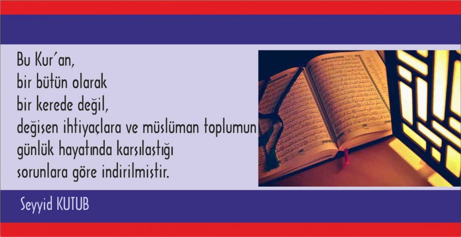 Bu Kur'an, bir bütün olarak bir kerede değil, değişen ihtiyaçlara ve müslüman toplumun günlük hayatında karşılaştığı sorunlara göre indirilmiştir.