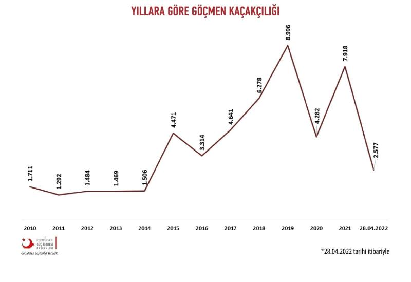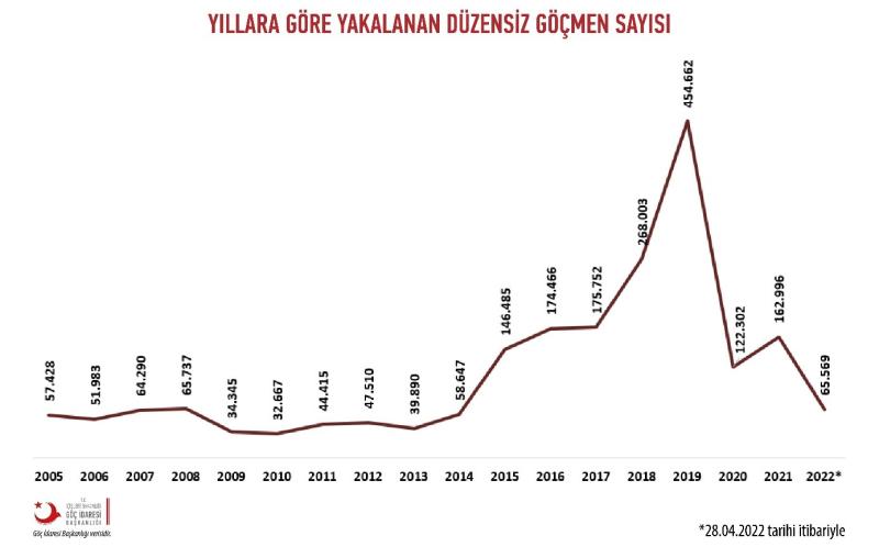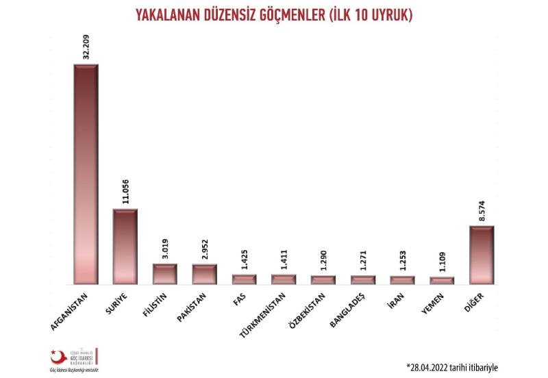 Nitekim Göç İdaresi Başkanlığı, düzensiz göçmen istatistiklerini düzenli bir şekilde paylaşmaya devam etmekte olup, aşağıda yer alan grafik düzensiz göçmenlere ilişkin bir veriyi göstermektedir.
