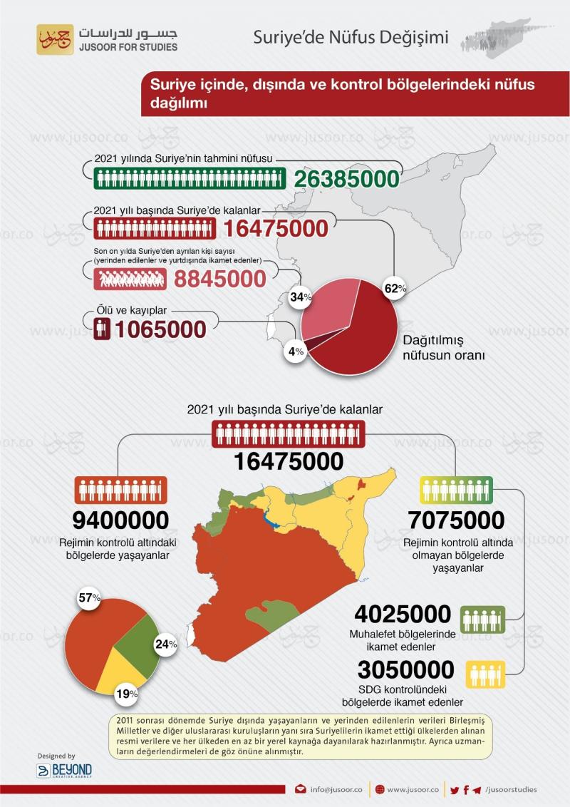 Suriye'de yerinden edilmiş siviller ve ülke içindeki nüfus dağılımı (Nisan 2022)