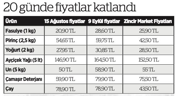 Birgün'ün haberine göre; ürünlerin fiyatlarının 20 liraya kadar arttığı görüldü. Erdoğan’ın 8 Ağustos’taki Merkez Karar Yönetim Kurulu Toplantısı’nda (MKYK) Tarım ve Orman Bakanı Vahit Kirişçi’ye Tarım Kredi Kooperatiflerine ait marketlerde fiyatları düşürme çağrısında bulunmasıyla 15 Ağustos’ta gerçekleşeceği söylenen indirim vaadi daha bir ay geçmeden yerini zamlı fiyatlara bıraktı.