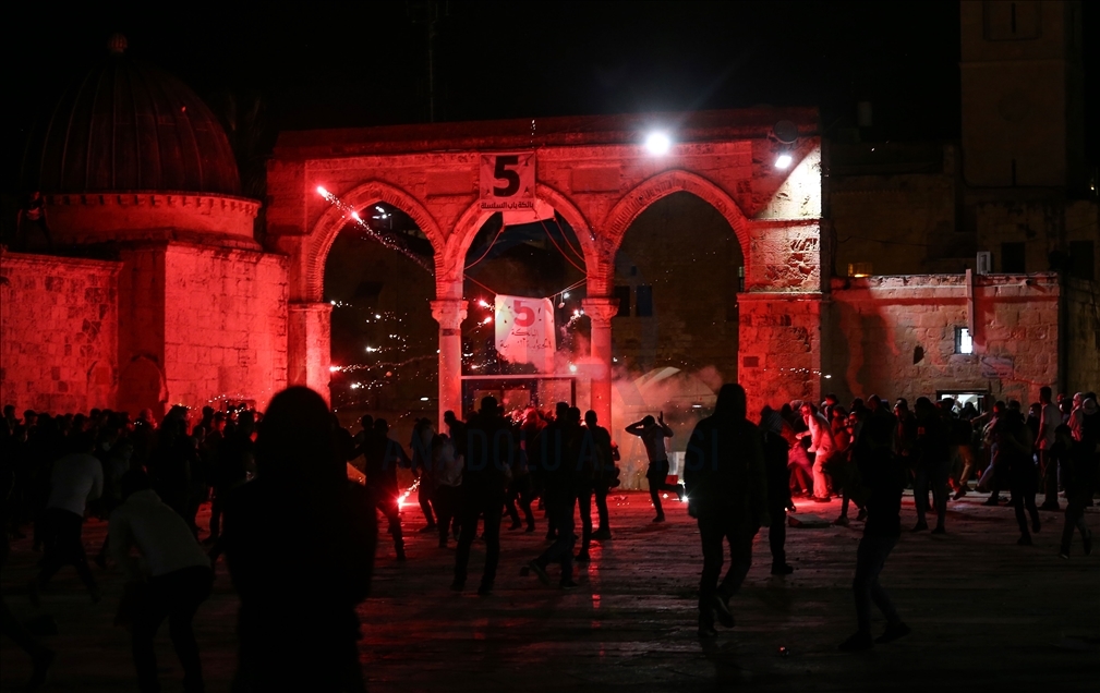 Mescid-i Aksa kompleksini yöneten Ürdün’e bağlı Kudüs İslami Vakıflar İdaresi, İsrail polisinin namaz bitmeden içeri girdiğini ve ses bombaları ve plastik mermiyle ibadet edenleri tahliye etmeye çalıştığını kaydetti. Filistin Kızılayı, İsrail kuvvetleri tarafından ses bombaları ve plastik mermiler kullanıldığını, 6 kişinin yaralandığını açıkladı.