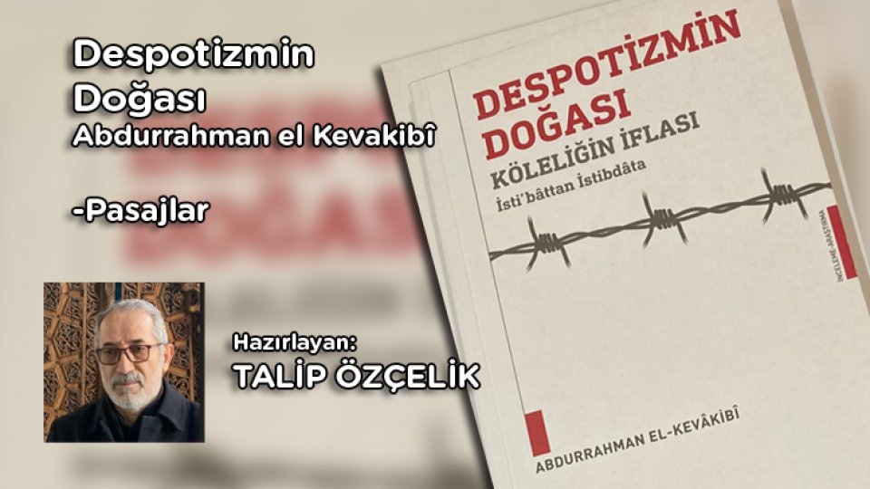 “… Bu sebeple despotizm halk kitlelerinin sadece bedenlerine değil aynı zamanda kıt akıllarına da hükmeder; akıllarını dilediği gibi ifsat eder. Basit zihinler üzerine tahakküm kurar, gerçekleri hatta bedii hakikatleri kendi arzusuna hizmet edecek şekilde çarpıtır. Böylece kitleler despotizme körü körüne teslimiyet gösterip, hakka ve hakkı gösterme çabalarına karşı direnirler.” Sh.144